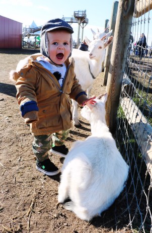 Since the weather in Calgary is starting to get cooler, we thought we should squeeze in an afternoon at the Calgary Corn Maze before the snow is here to stay. We went with some friends of ours who have a 20 month-old and our little guys had a blast chasing around goats, playing in the pumpkin patch, going for pony rides and banging on cast-iron skillets. It was such a fun afternoon and we loved seeing what a different experience it was from last year when we took Beckett there at just a little over a month old.