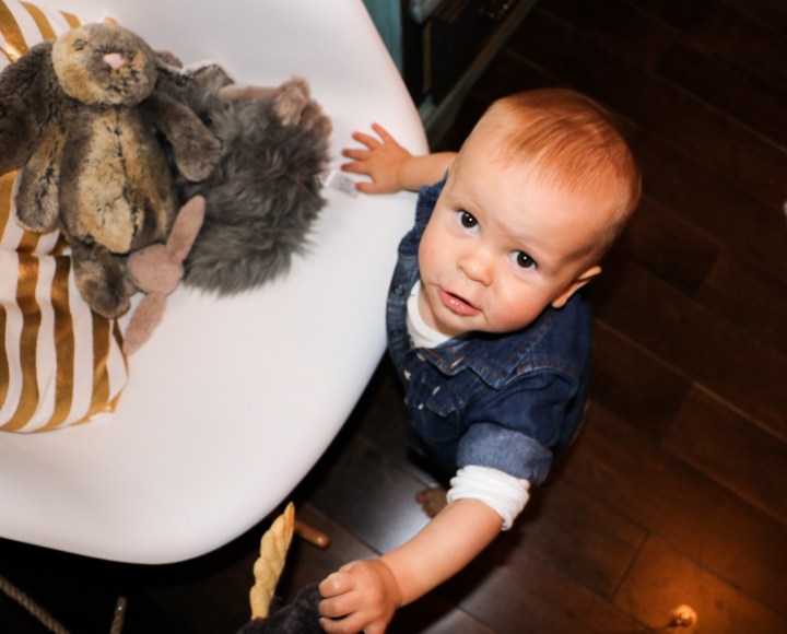 This is a lovely idea and I really do have to hand it to the parents out there taking photos of their child in front of the same wall every day for 18 years. I thought that this would be an easy task, especially since I was home with Beckett every day for his first year. But for some reason, this ended up being a lot more challenging than I thought it would be. By the time I had gotten him dressed into sweatpants or whatever clothes happened to be clean that day, I would realize that it was the day I was supposed to take a new monthly photo, but would then put it off until he was wearing a cuter outfit. When the next day rolled around, we would be out at the library or the grocery store and it would get put off again. When B started to become more mobile, it became even more difficult to actually capture him sitting still for our photo shoot. I’m tired just thinking about it.